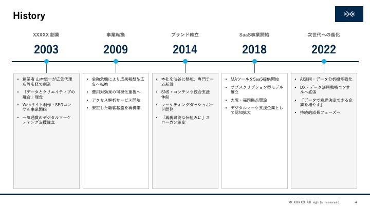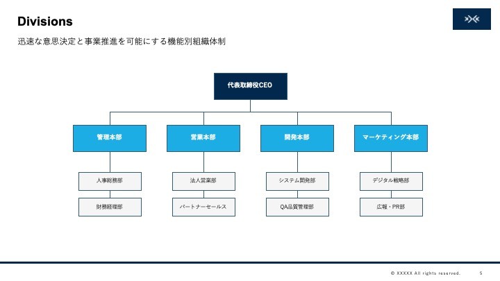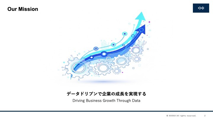 社内テンプレート準拠のスライドを自動生成できます。